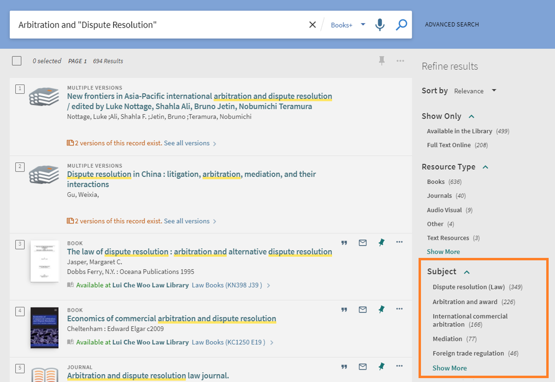 After you submit a search in Find@HKUL, you can use subject headings to find library materials on the same or relevant subject.