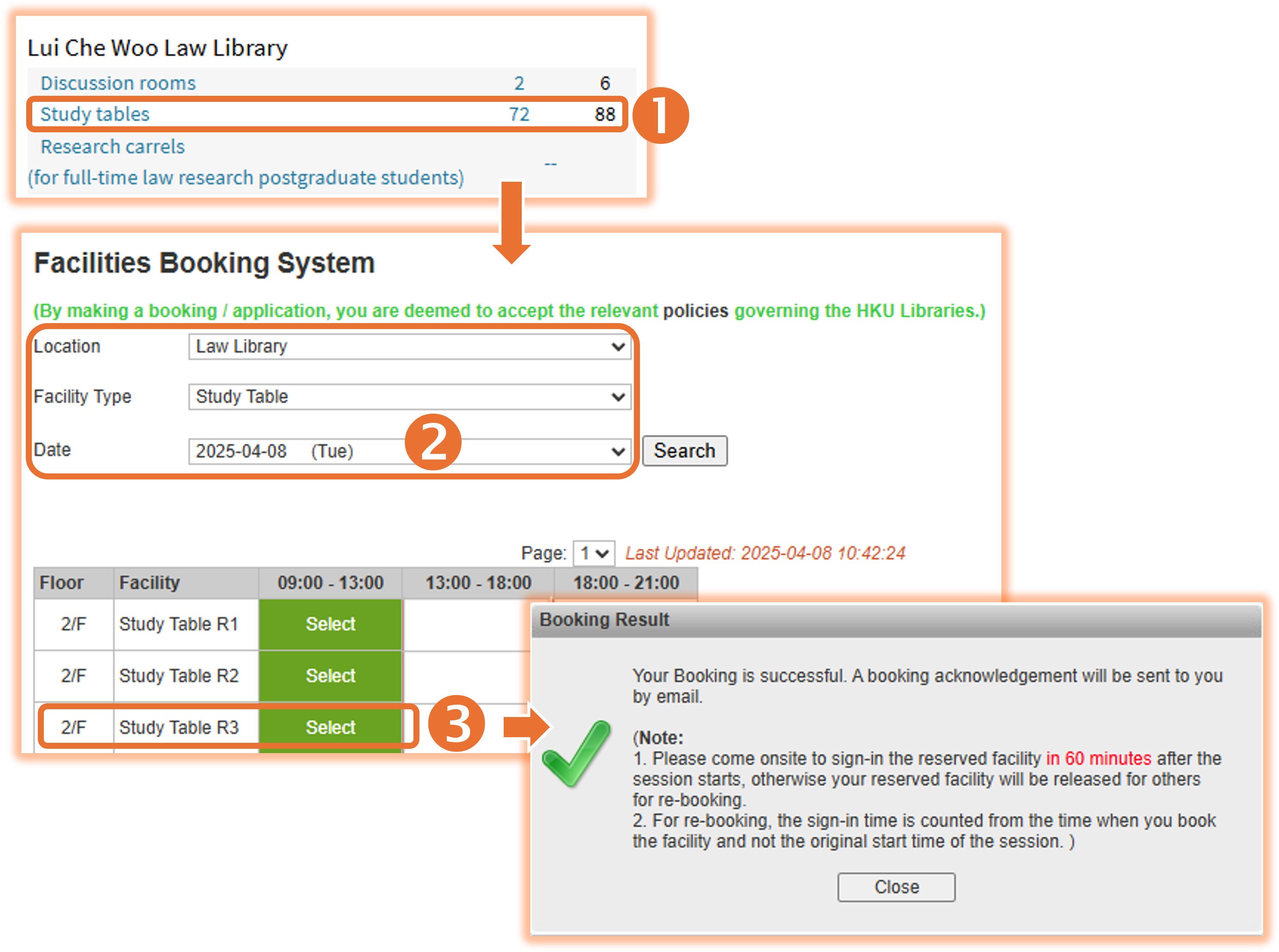 You can click on Book a Space to reserve discussion rooms, study tables, and other facilities in the Law Library and other HKU libraries with the steps below: