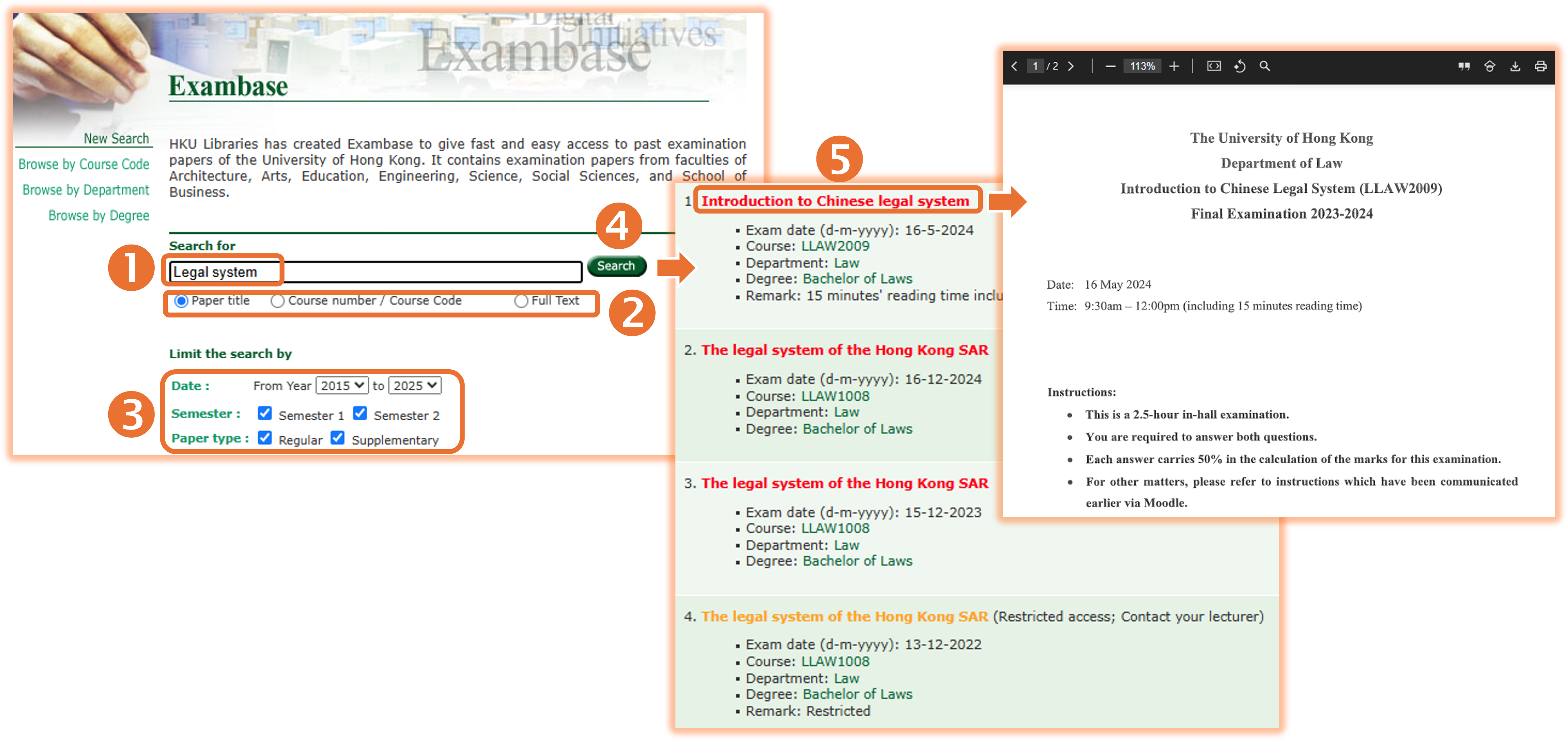 You can access selective* past examination papers by searching or browsing through Exambase. Follow these steps to search: