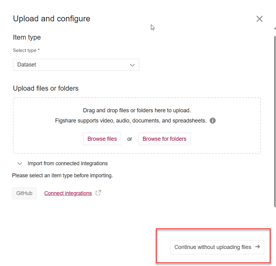 If your data are forbidden to be uploaded onto another repository owing to copyright issues, or the data are considered to be too sensitive to be uploaded (with valid justification), you may wish to create a metadata record only.